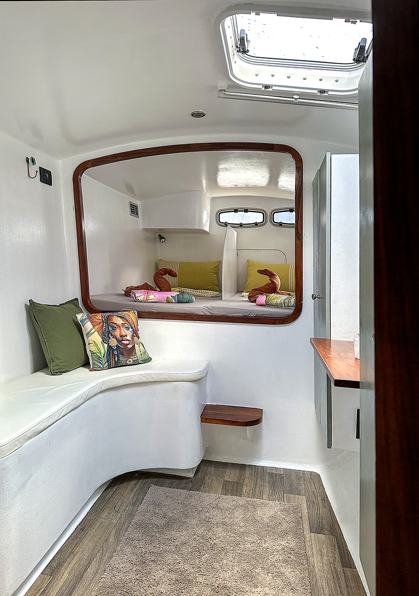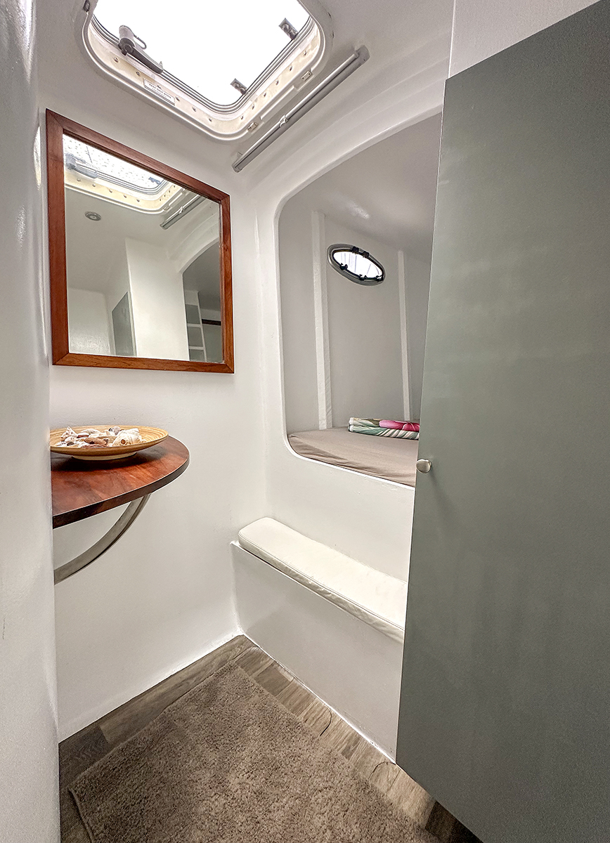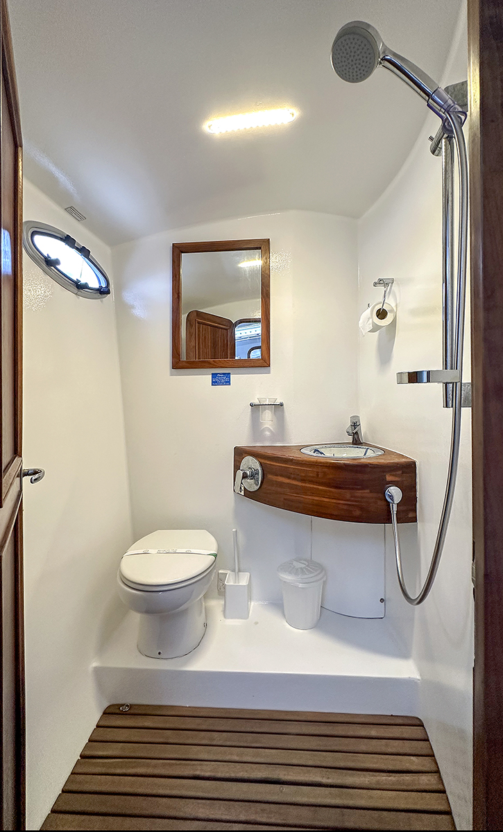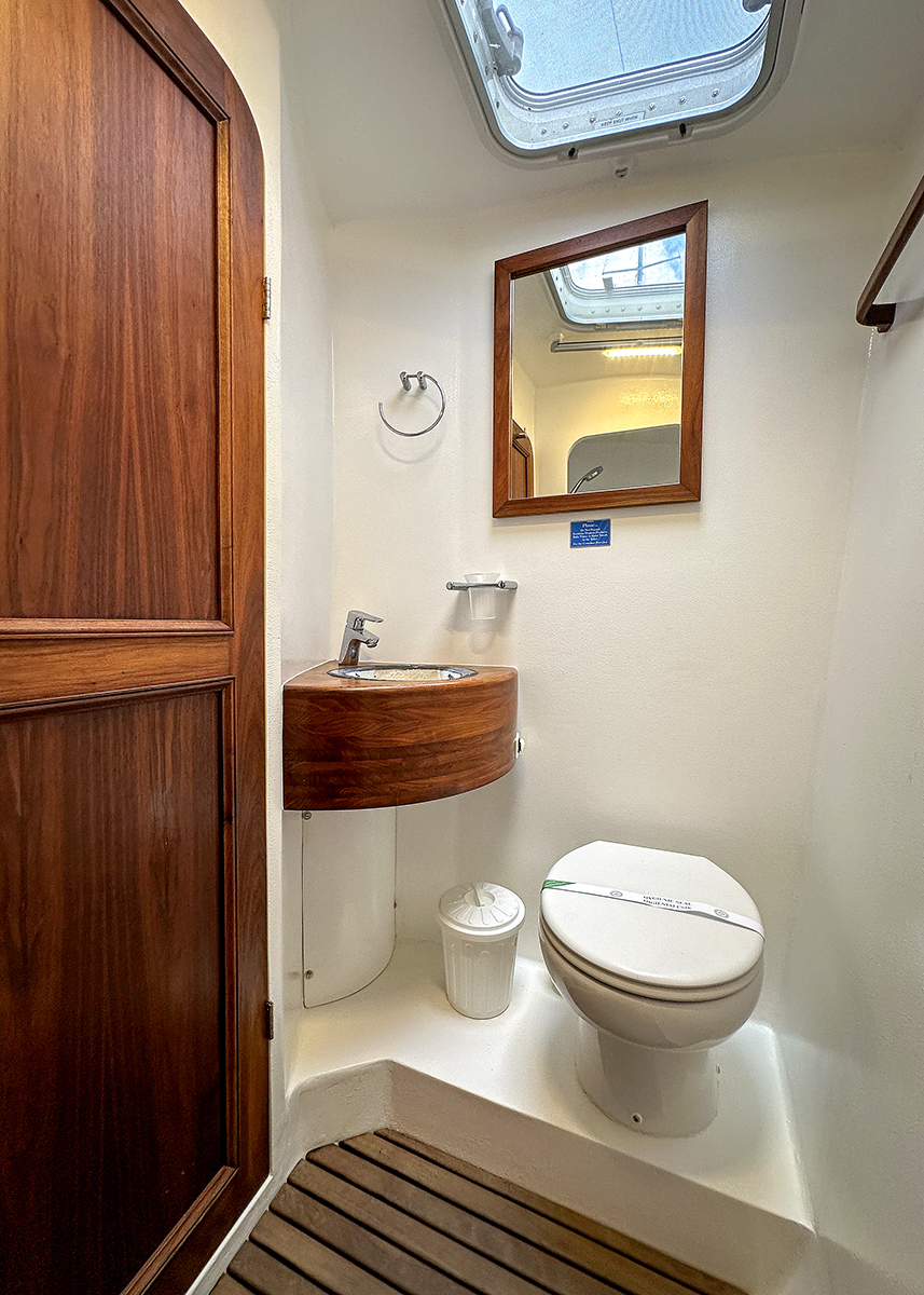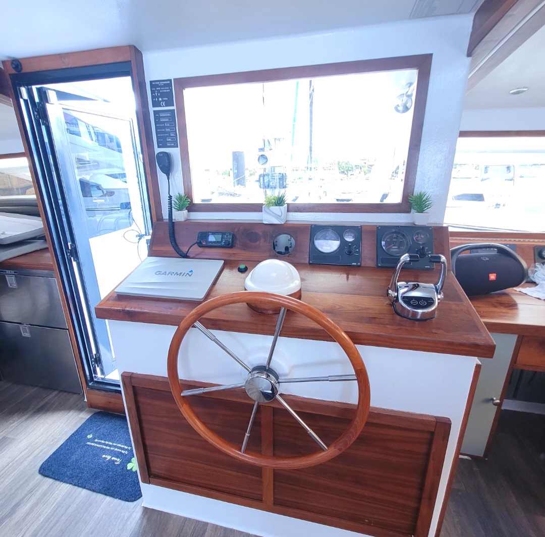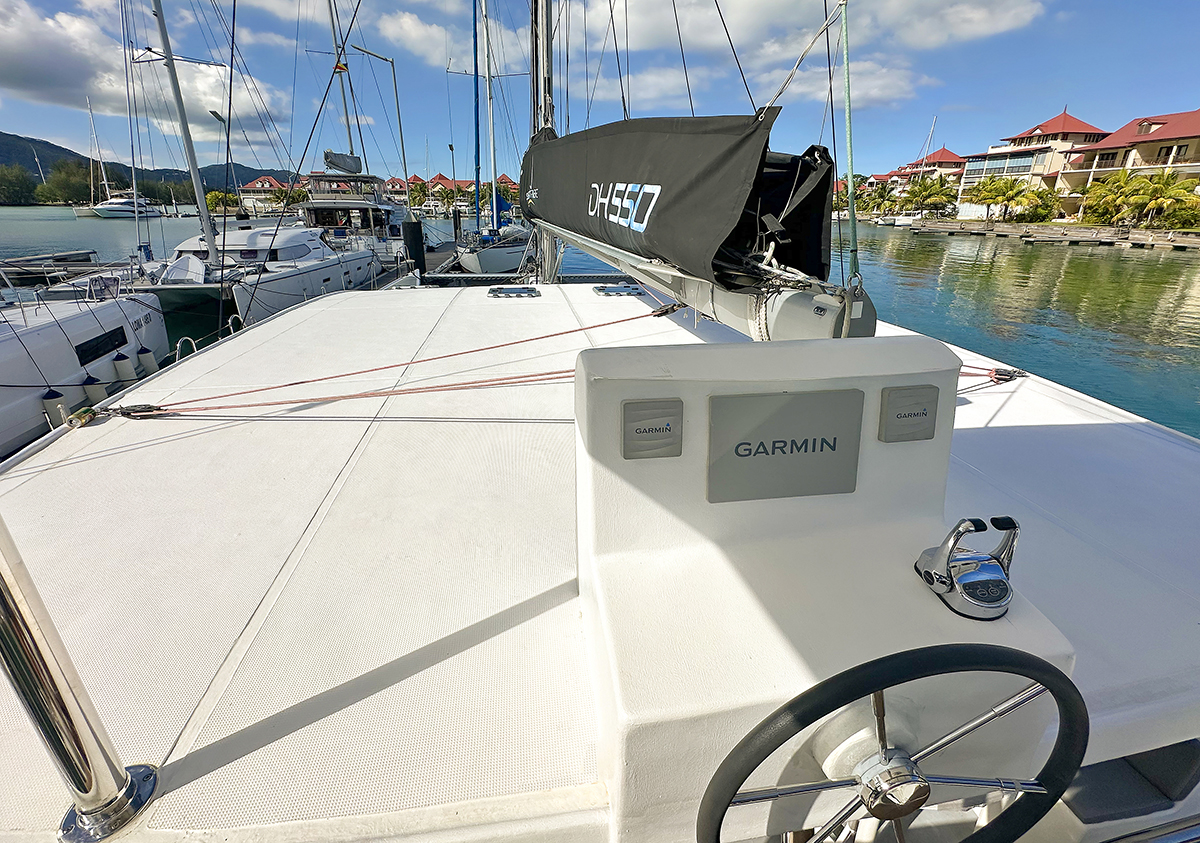 Accommodating up to 10 guests in 4 double cabins, 2 forward skipper cabins, and an extra convertible double bed in the saloon, the DH550 offers generous space for everyone on board. She features two helm stations for easy navigation and was upgraded in 2025 with an additional outside helm station, where up to five people can enjoy the stunning views while sailing.