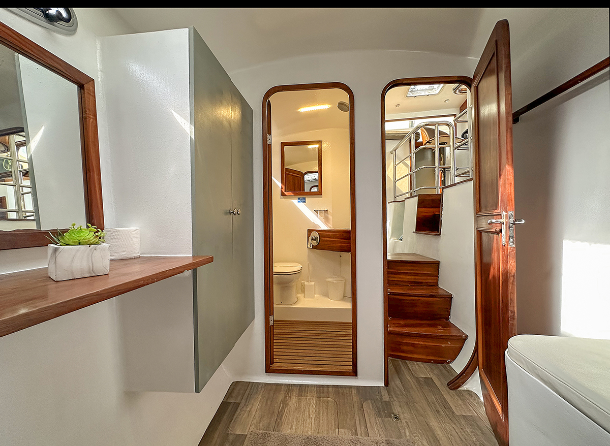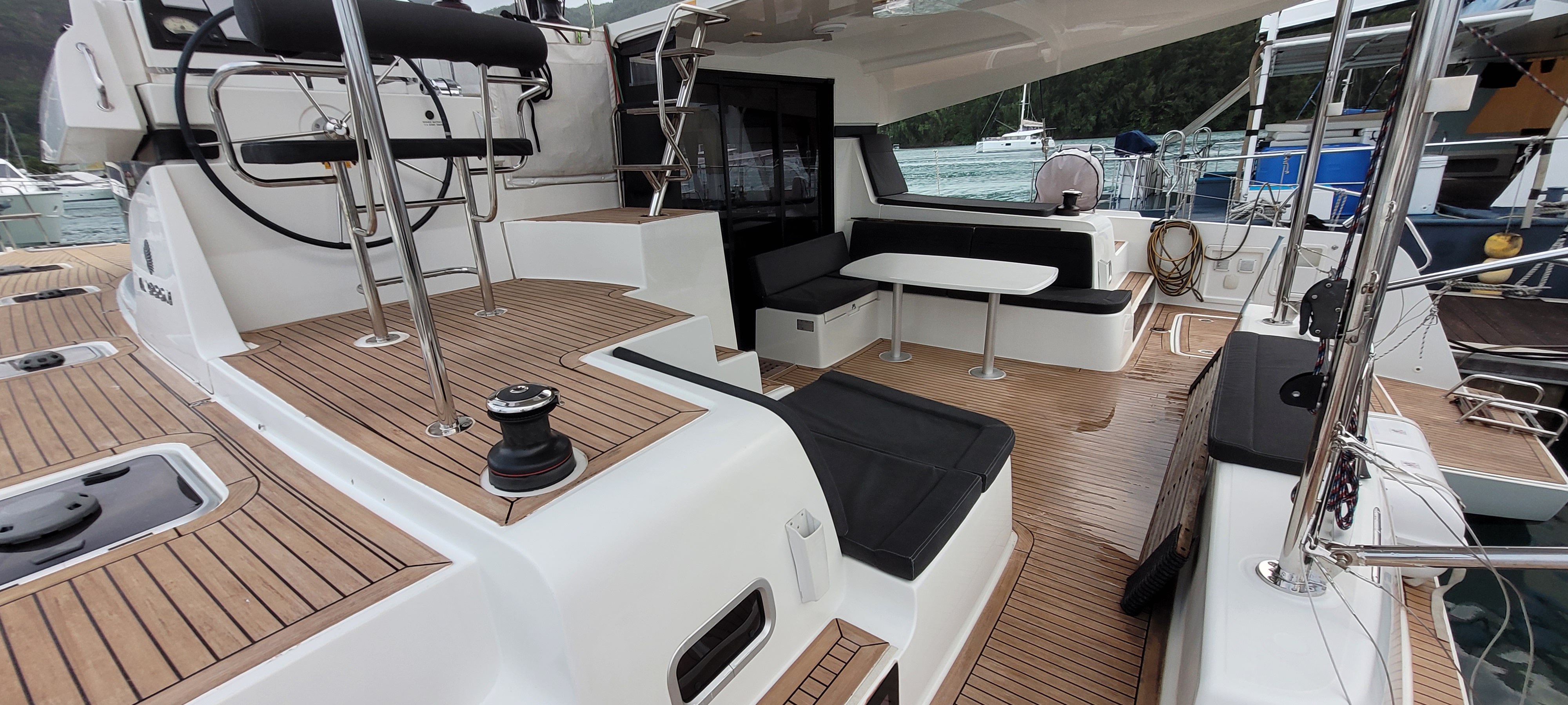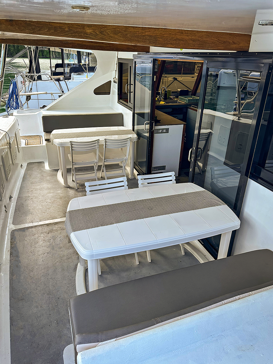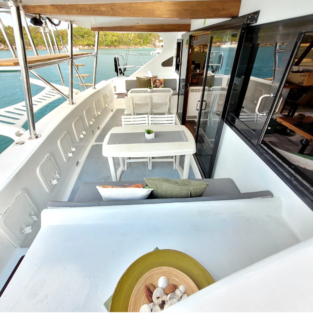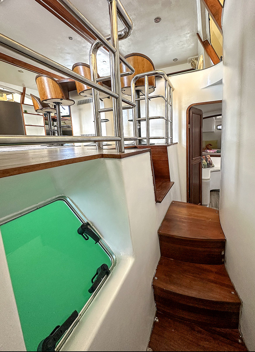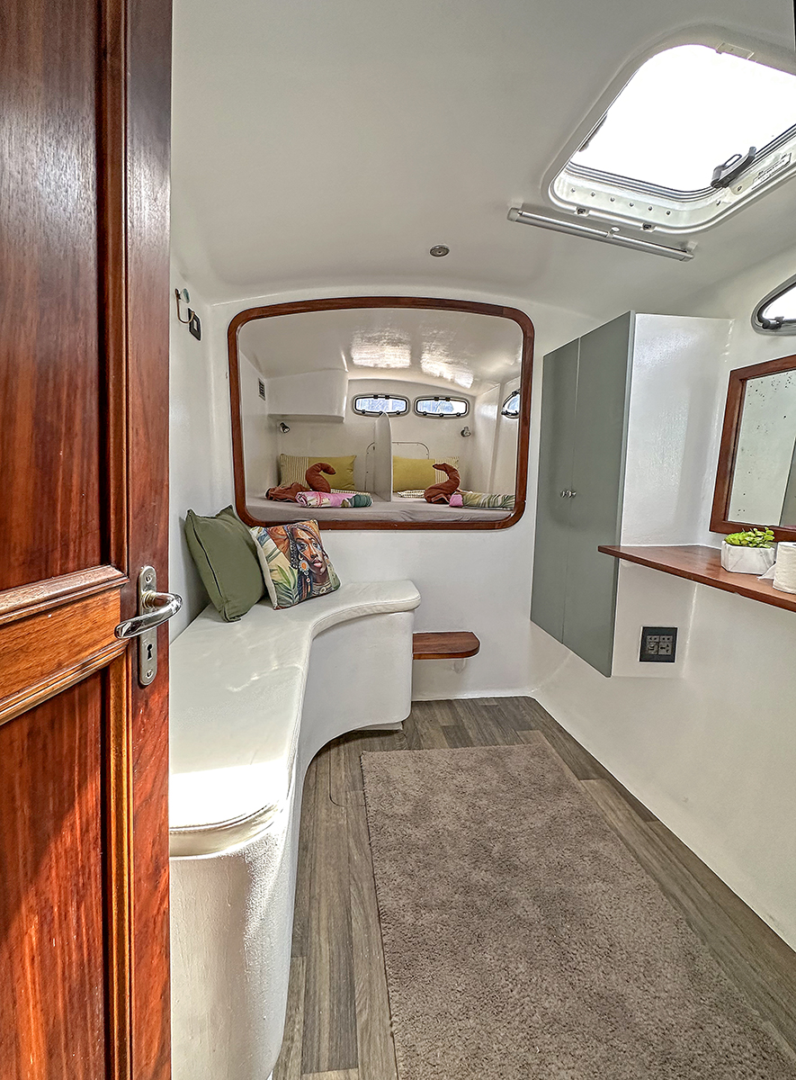 Accommodating up to 10 guests in 4 double cabins, 2 forward skipper cabins, and an extra convertible double bed in the saloon, the DH550 offers generous space for everyone on board. She features two helm stations for easy navigation and was upgraded in 2025 with an additional outside helm station, where up to five people can enjoy the stunning views while sailing.