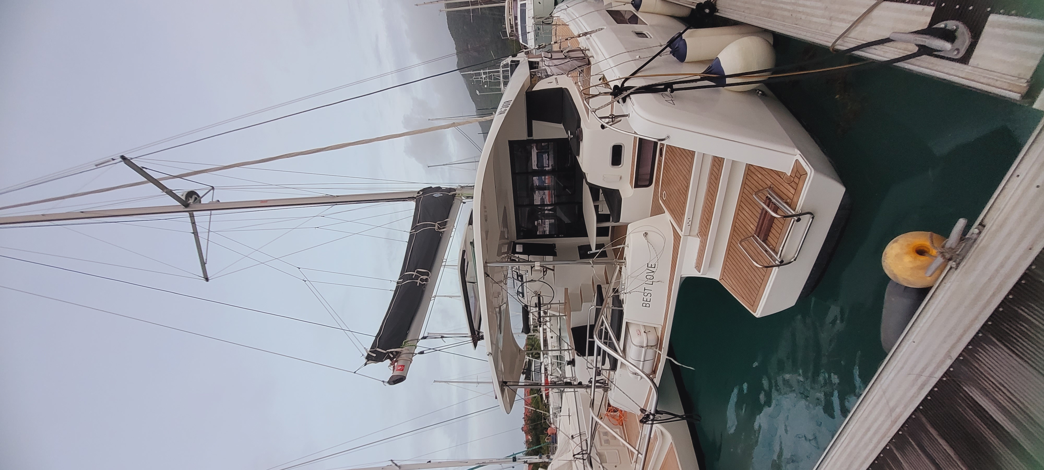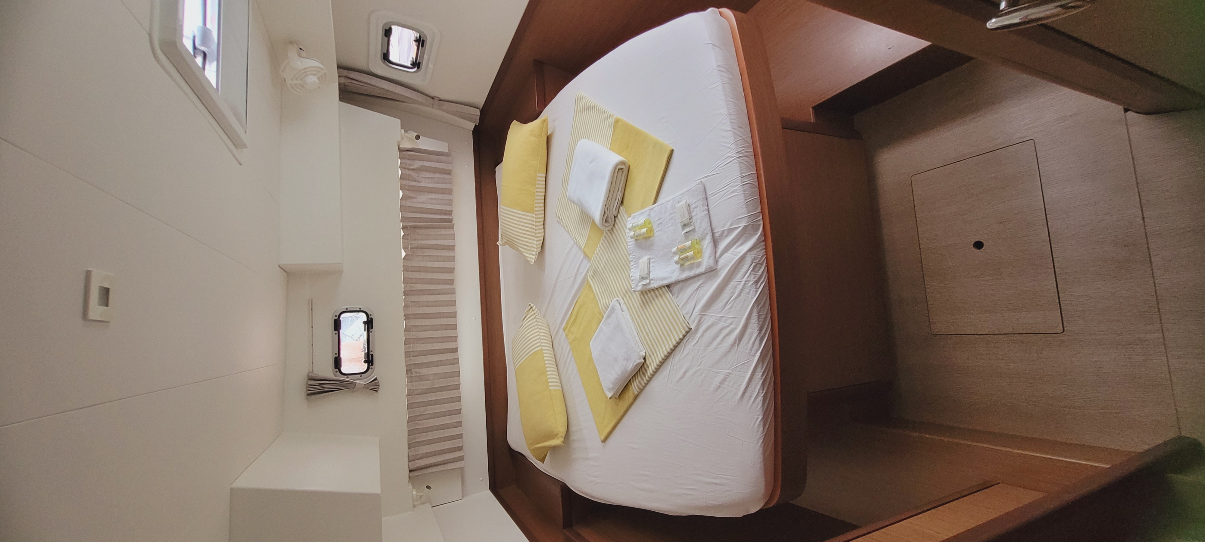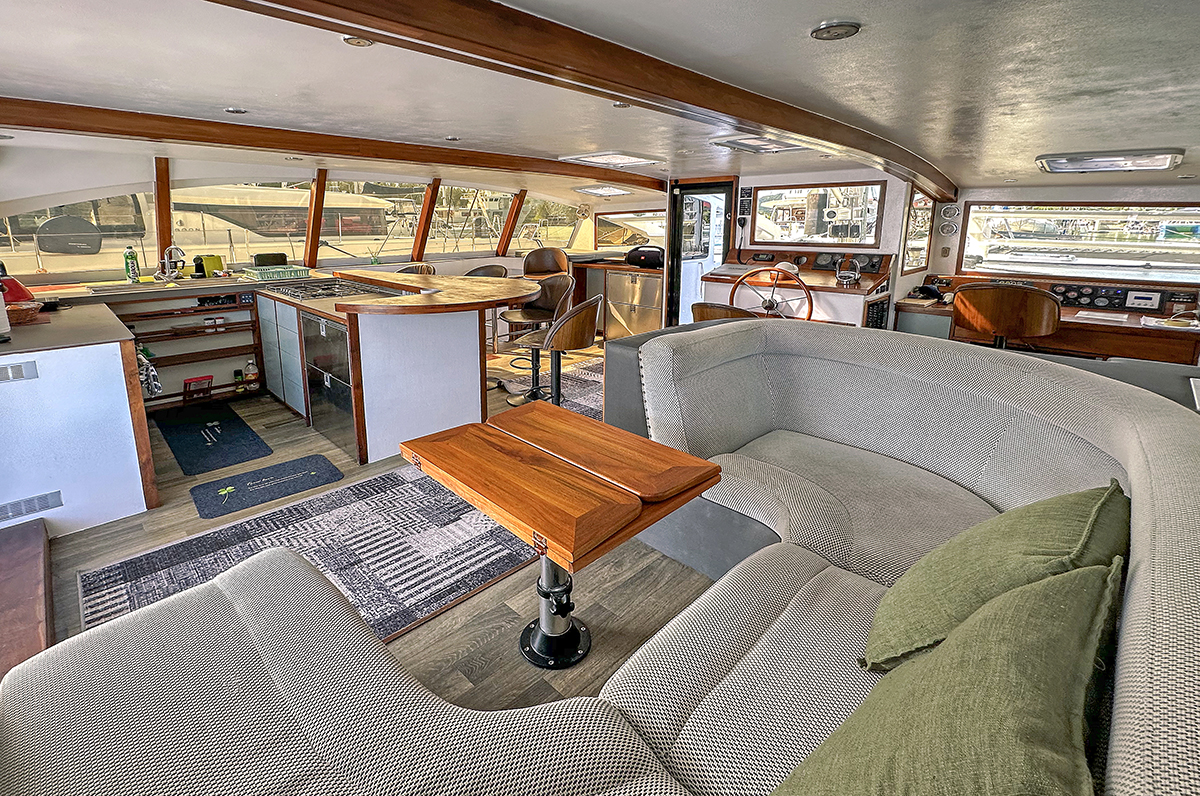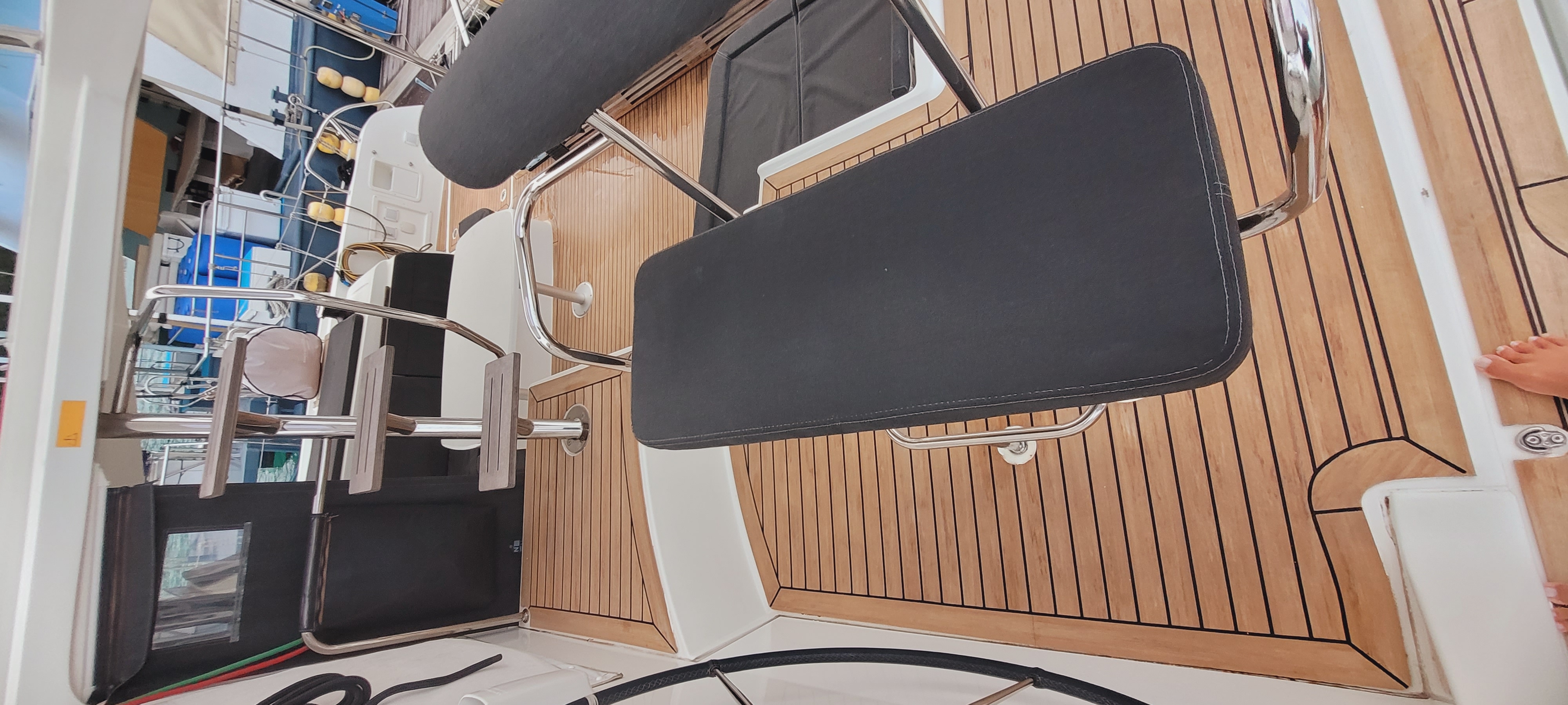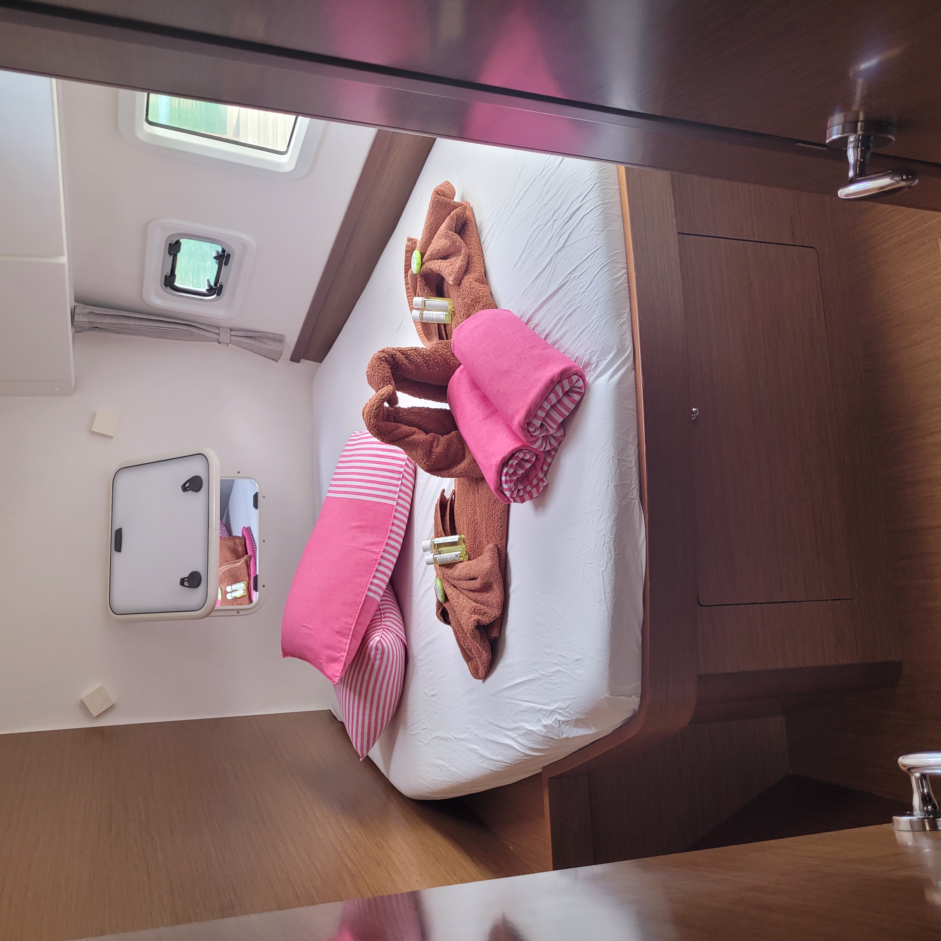 Accommodating up to 10 guests in 4 double cabins, 2 forward skipper cabins, and an extra convertible double bed in the saloon, the DH550 offers generous space for everyone on board. She features two helm stations for easy navigation and was upgraded in 2025 with an additional outside helm station, where up to five people can enjoy the stunning views while sailing.