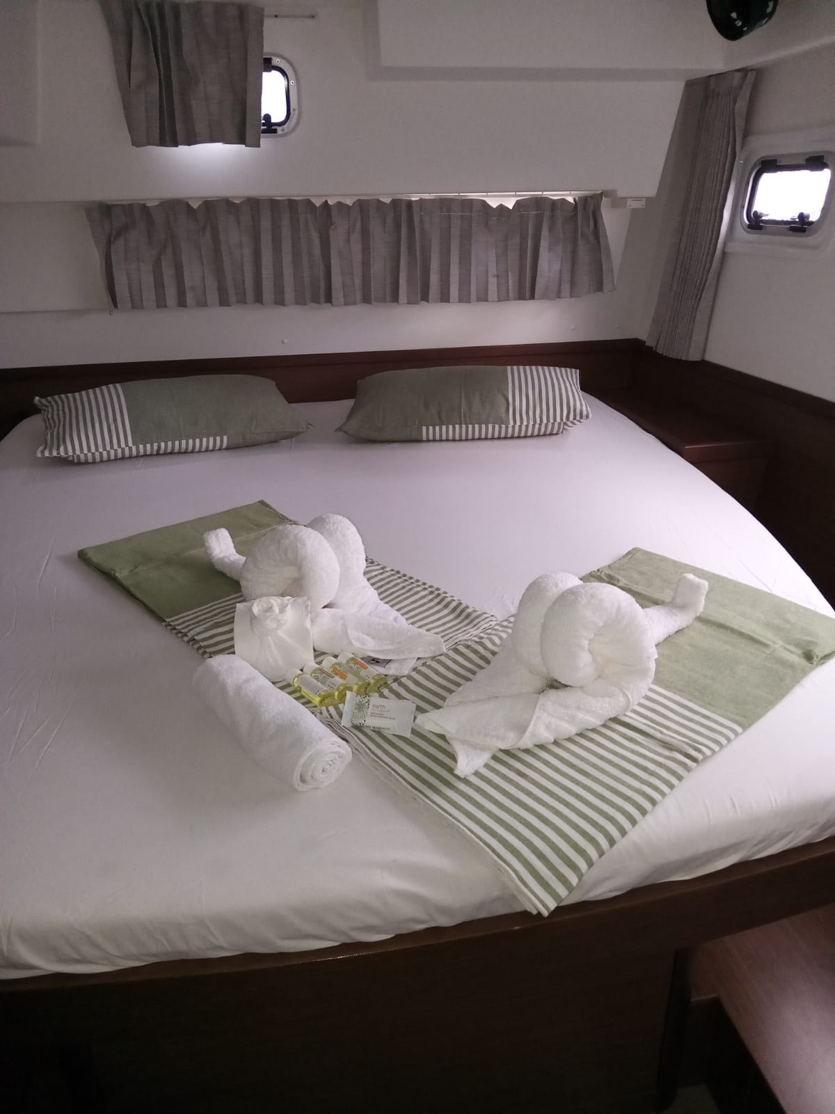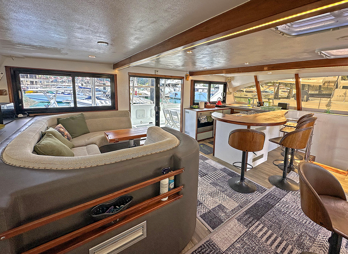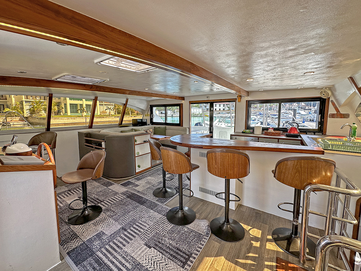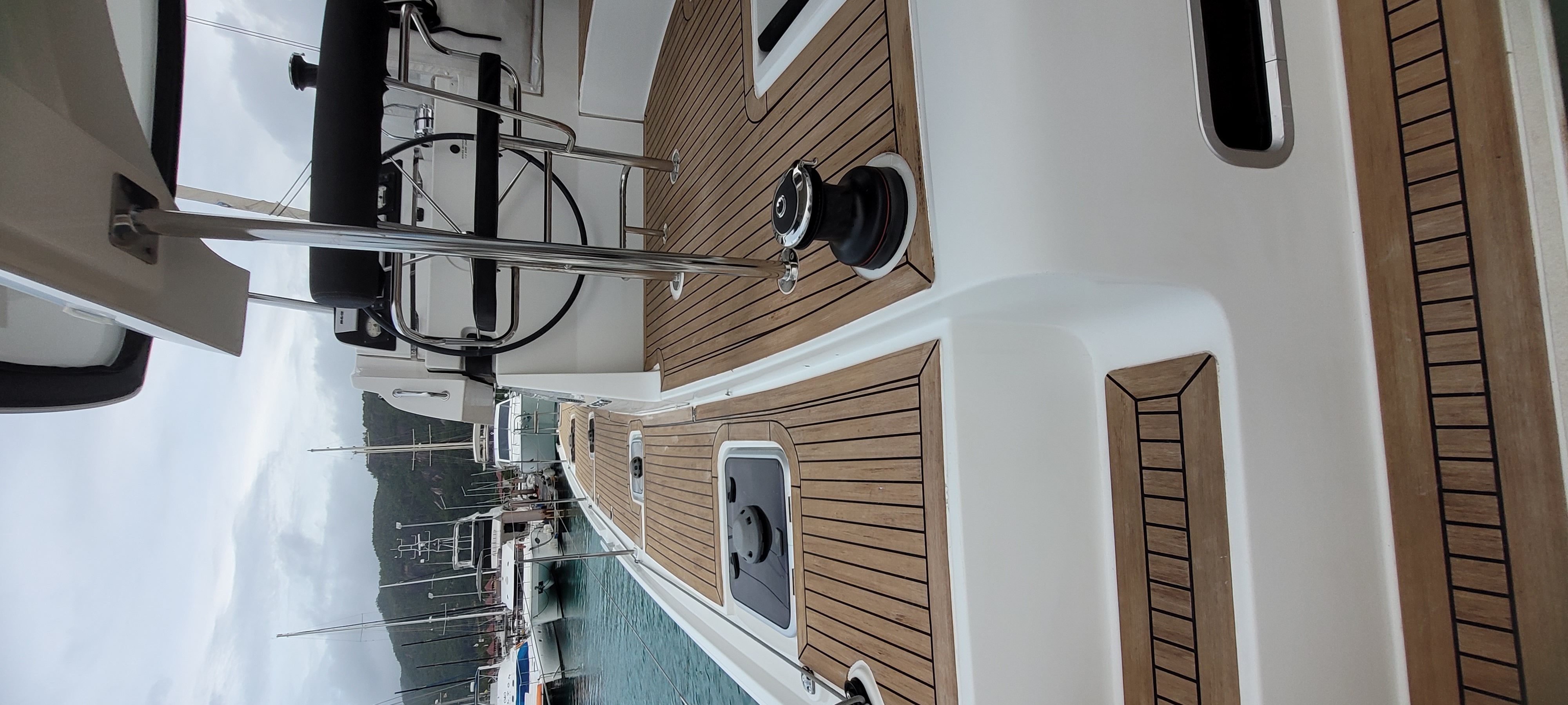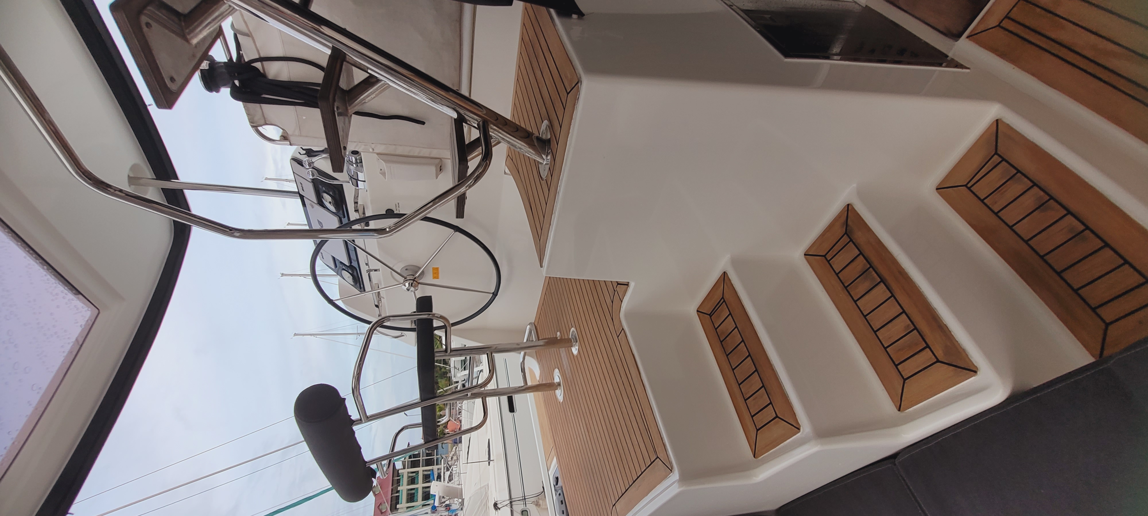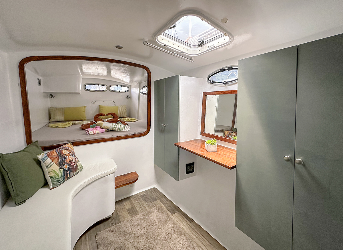 Accommodating up to 10 guests in 4 double cabins, 2 forward skipper cabins, and an extra convertible double bed in the saloon, the DH550 offers generous space for everyone on board. She features two helm stations for easy navigation and was upgraded in 2025 with an additional outside helm station, where up to five people can enjoy the stunning views while sailing.