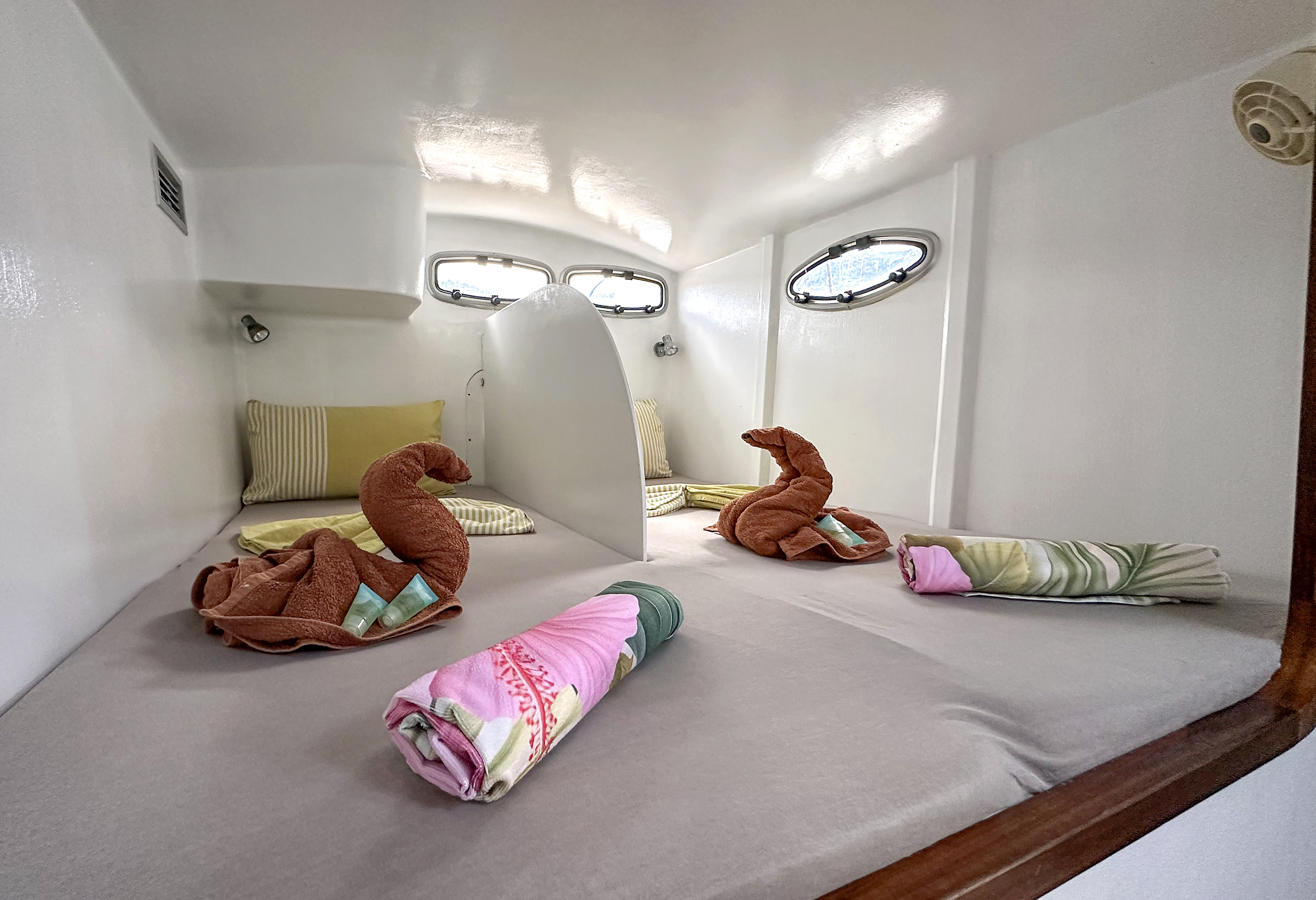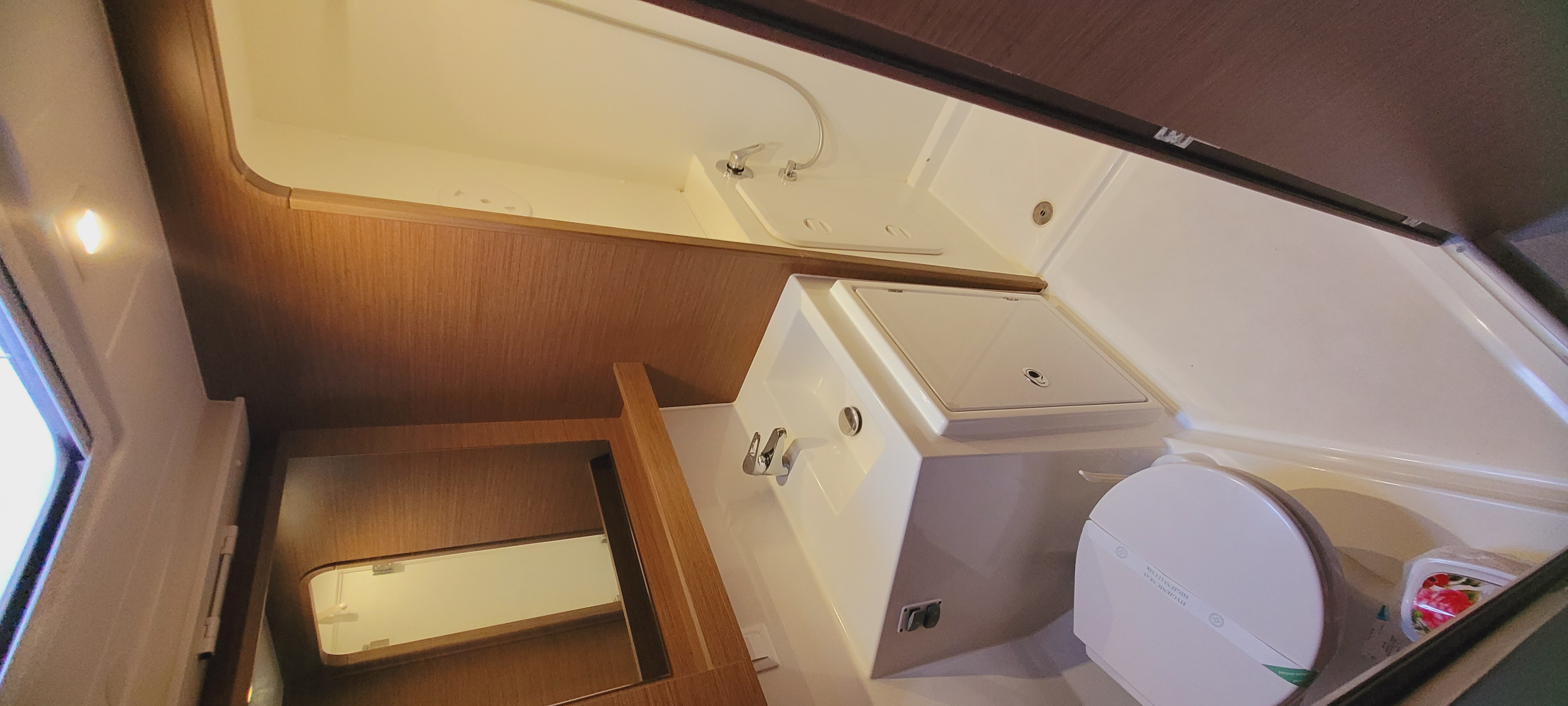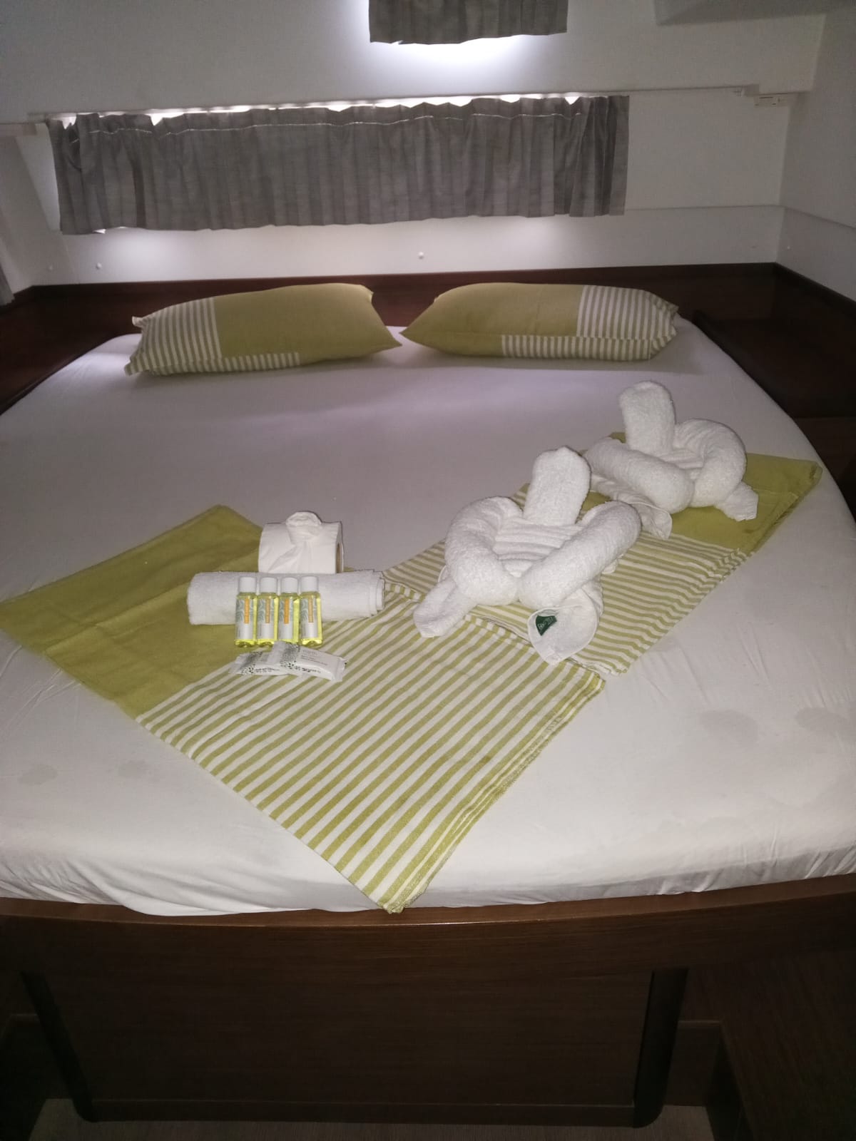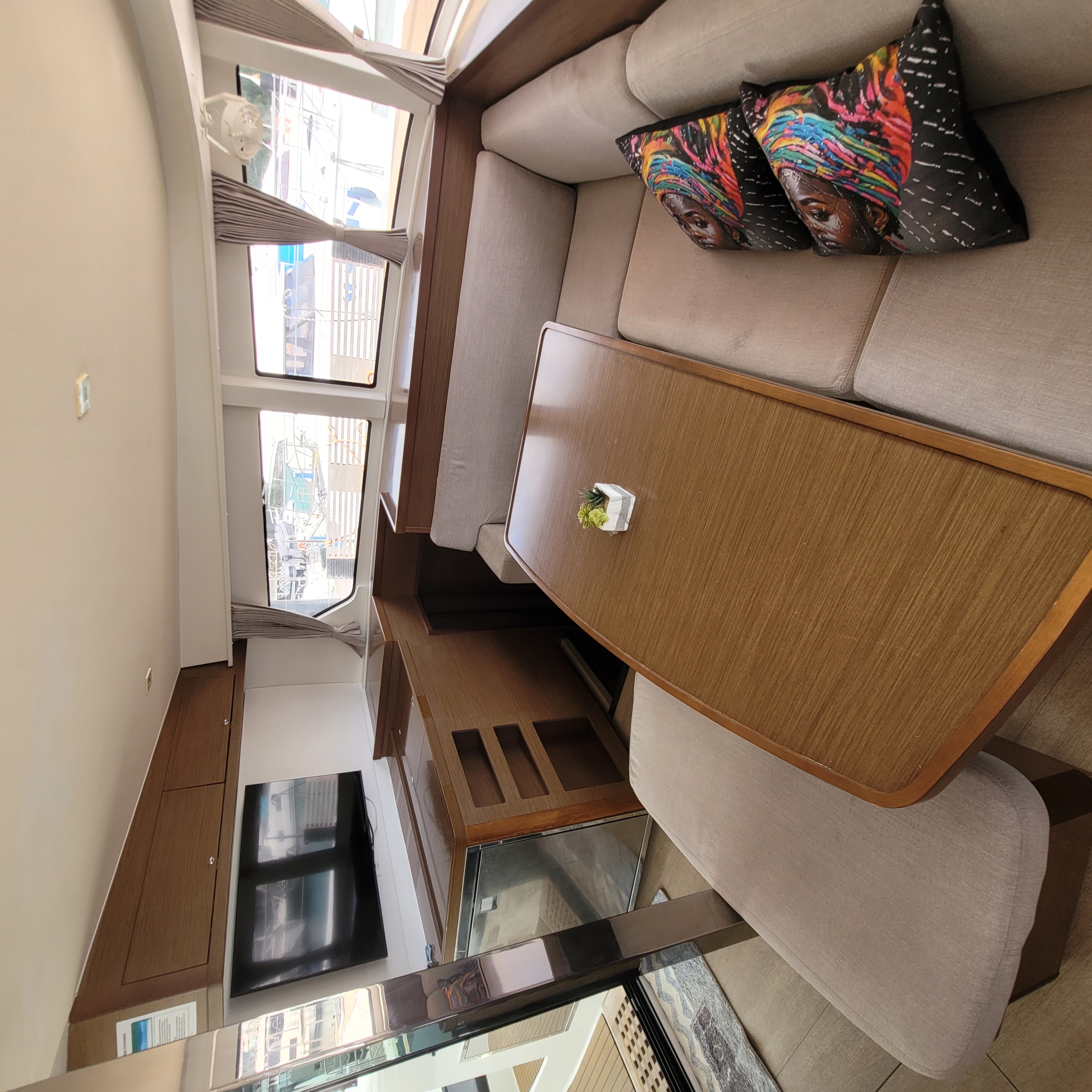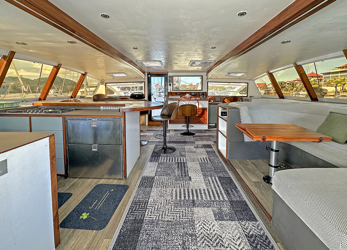 Accommodating up to 10 guests in 4 double cabins, 2 forward skipper cabins, and an extra convertible double bed in the saloon, the DH550 offers generous space for everyone on board. She features two helm stations for easy navigation and was upgraded in 2025 with an additional outside helm station, where up to five people can enjoy the stunning views while sailing.